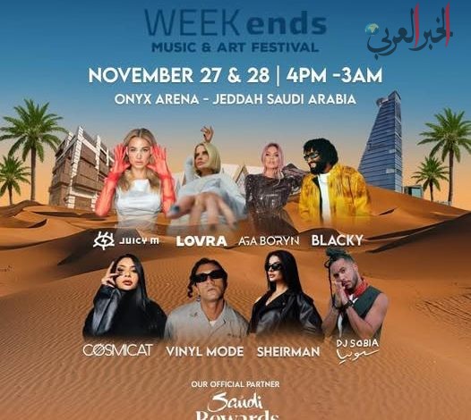 تنطلق يوم الخميس المقبل وبدعم من ” روح السعودية ” فعاليات مهرجان “ويكندز” للموسيقى والفنون في جدة، بمشاركة 22 فنانًا ونجمًا عالميًا ومحليًا، على مدار يومين متتاليين، 27-28 نوفمبر، في “أونيكس أرينا”