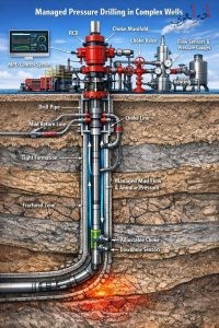 تلعب MPD دوراً حاسماً في مواجهة التحديات المرتبطة بالآبار المعقدة: