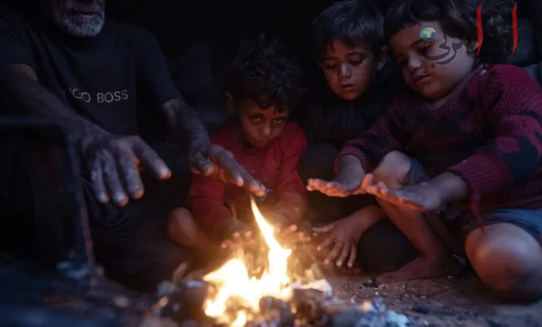 اطفال غزة يبيتون في العراء وسط البرد القارس بعد غرق خيامهم